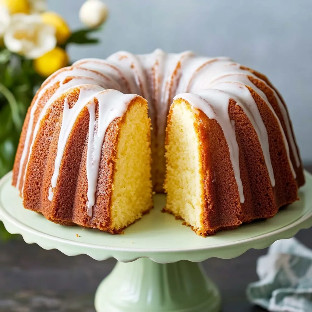 Fold in the 7UP to lighten the batter, then pour it into a well-greased Bundt pan. Bake low and slow until golden and a toothpick comes out clean. Once cooled, drizzle on a tangy lemon glaze for the perfect finishing touch.