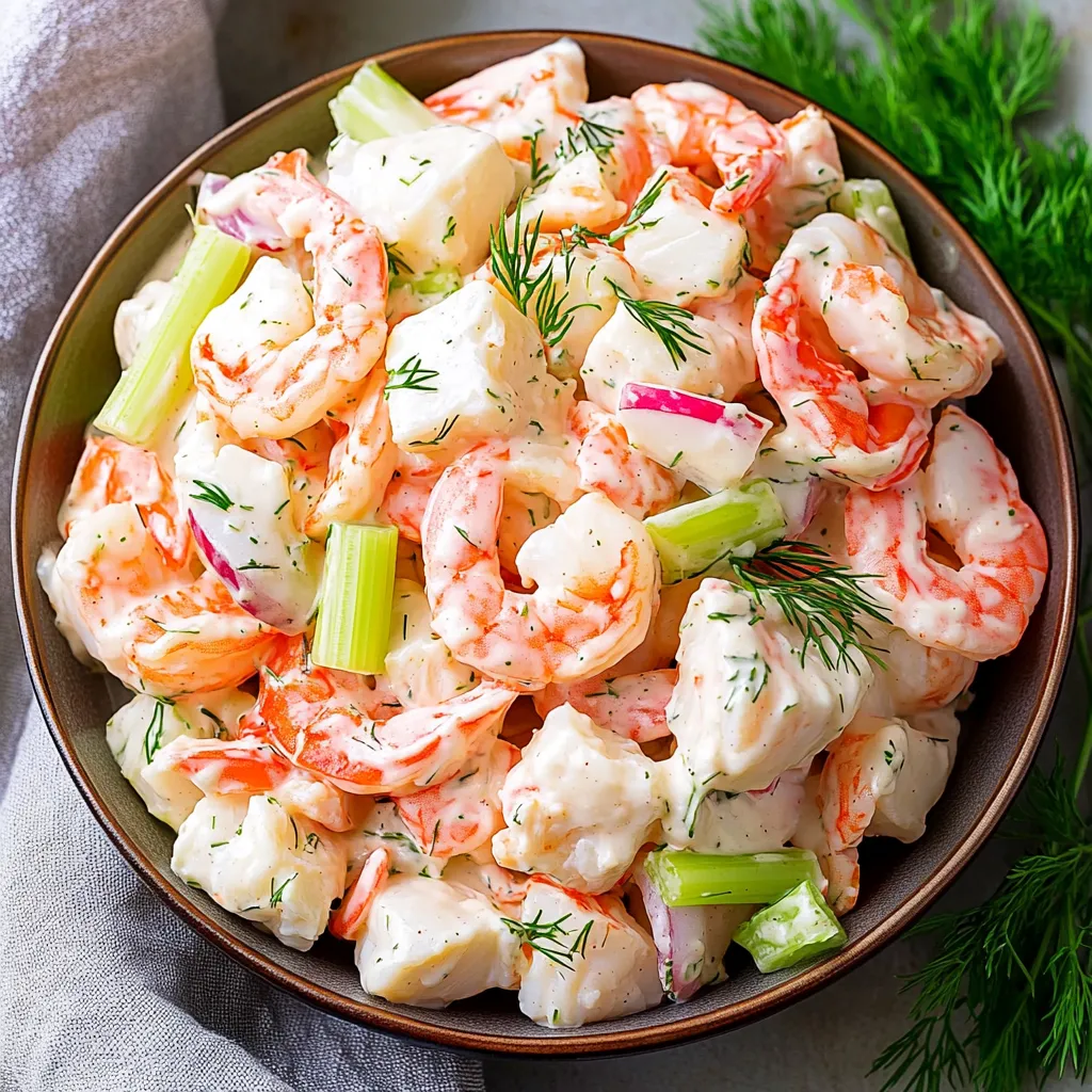 Bright, refreshing, and packed with protein, this seafood salad blends tender shrimp and imitation crab with a creamy dill dressing that’s perfect for a quick lunch or light dinner.