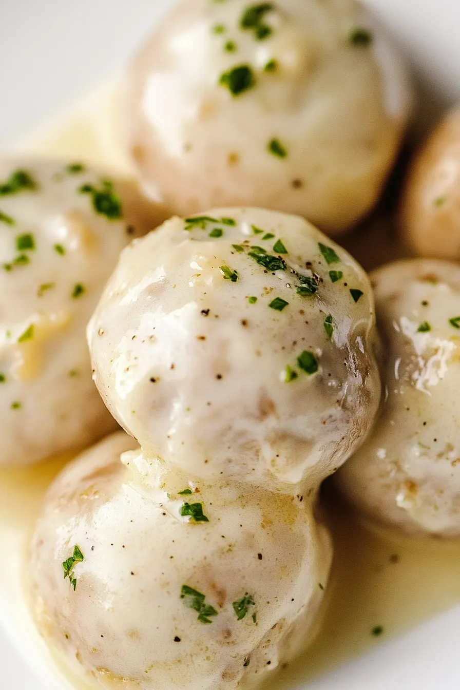 - White mushrooms – Earthy and juicy, they soak up every drop of creamy garlic goodness while holding their bite.