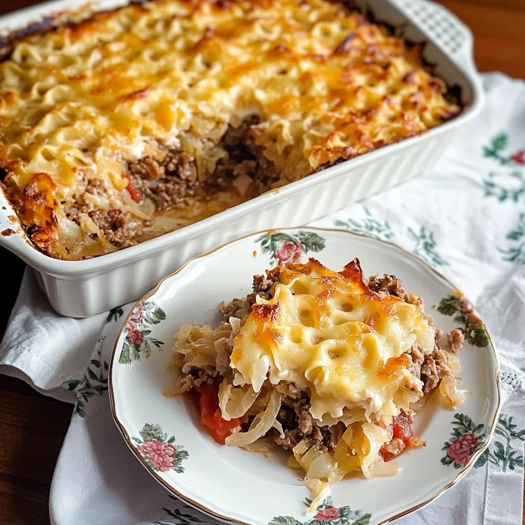 A cozy blend of tangy sauerkraut, savory ground meat, and creamy cheese, this sauerkraut casserole is a comfort food classic with bold, unexpected flavor.