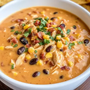 - Arrange the chicken breasts along the bottom of a 6-quart slow cooker. Scatter the corn, black beans, and diced tomatoes with green chilies over the chicken, then pour in the chicken broth. Sprinkle in the cumin, chili powder, onion powder, and ranch seasoning mix, followed by the cooked bacon. Stir gently to combine all ingredients. Position the block of cream cheese atop the mixture without stirring it in.