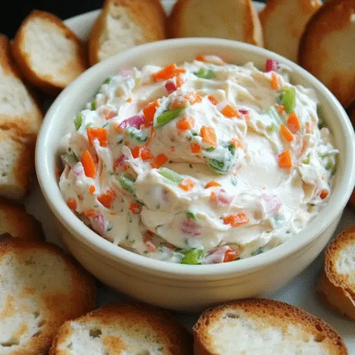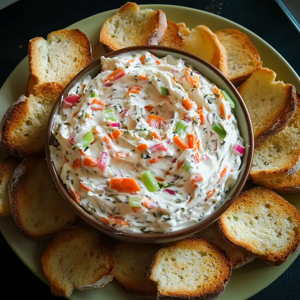 This homemade version adds fresh, finely chopped vegetables to a smooth cream cheese base, delivering flavor and texture in every swipe.