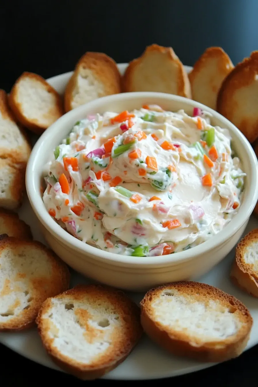 This homemade version adds fresh, finely chopped vegetables to a smooth cream cheese base, delivering flavor and texture in every swipe.